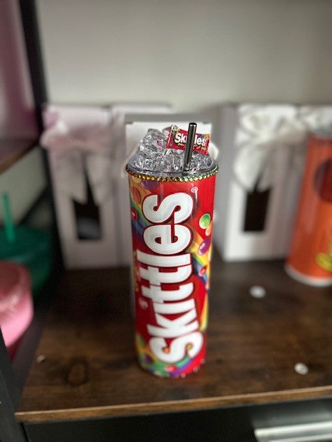 Custom Made Skittles 20oz Stainless Steel Tumbler with 3D Ice Topper